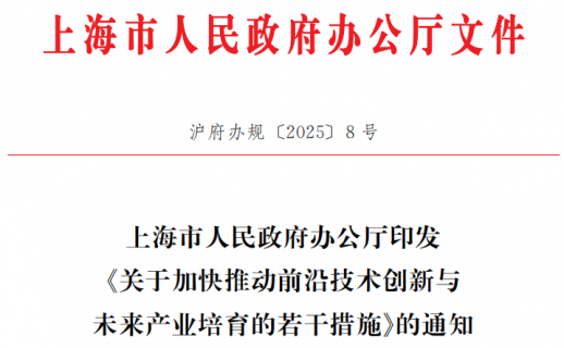 上海市人民政府办公厅印发《关于加快推动前沿技术创新与未来产业培育的...
