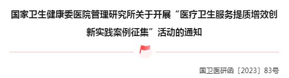 为深入贯彻落实中共中央办公厅、国务院办公厅《关于进一步完善医疗卫生服务体系的意见》,国务院办公厅《关于推动公立医院高质量发展的意见》(国办发〔2021〕18号),国家卫生健康委《关于印发<三级医院评审标准(2022年版)>及其实施细则的通知》(国卫医政发〔2022〕31号)、《2023年国家医疗质量安全改进目标》(国卫办医政函〔2023〕45号)等文件精神,总结各地区、各单位的创新做法和先进经验,持续挖掘和推广医院高质量发展先进典型,经研究,我所拟开展“医疗卫生服务提质增效创新实践案例征集”活动,届时将从中遴选出典型案例在“第四届国际医疗质量与安全大会”上进行专题发言、壁报展示、案例集汇编等成果交流活动。具体事宜通知如下: